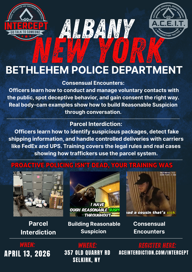 I went to this course expecting just the basics of parcel interdiction and consensual encounters. When I left for the day, I was able to recognize many new approaches to consensual encounters and also learn an in-depth perspective on parcel interdiction. Great course!