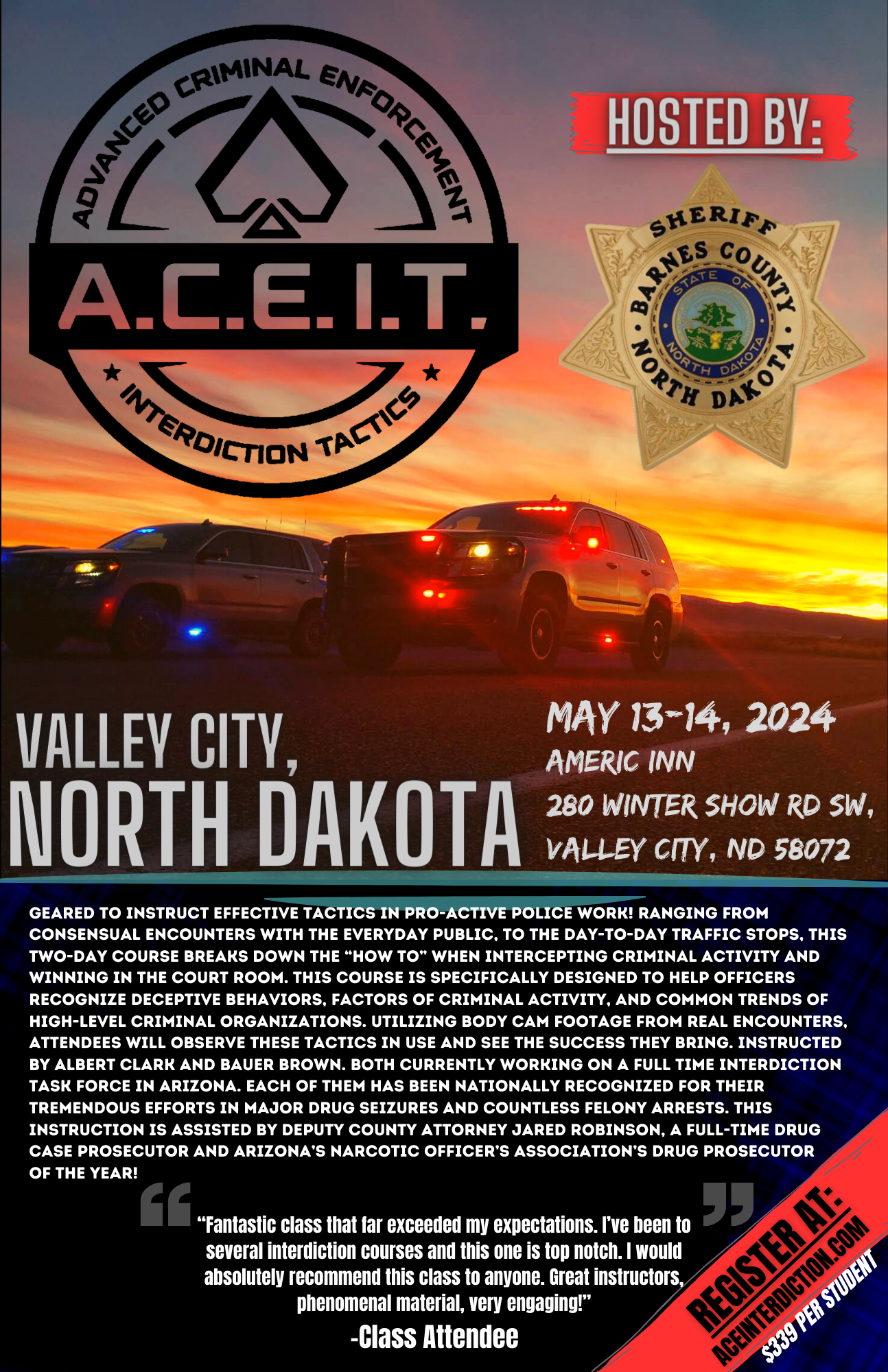 This basic level class is great for beginners and intermediate officers needing a new perspective on Interdiction.