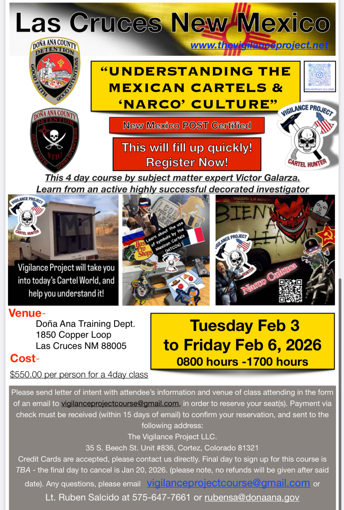 It is an awesome class to attend. It has definitely opened my eyes into the Mexican Cartels and the Narco Culture they embody. I will 100% recommend this class to anyone that is interested in this topic, narcs or regular patrol.